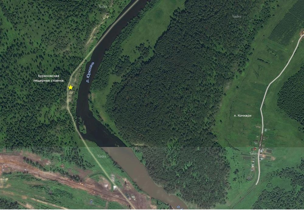 Бурановская пещерная стоянка. Координаты: N 55°00.372′ E58°08.411′.