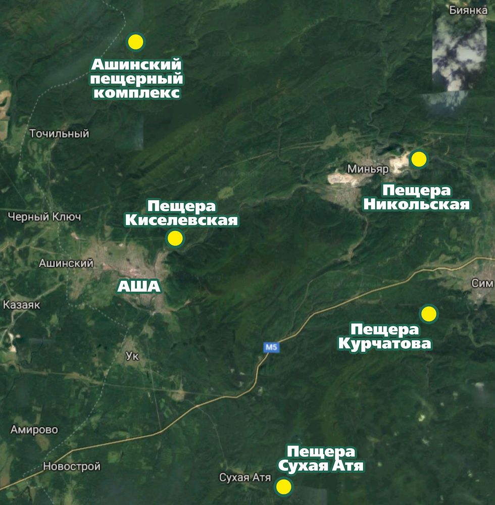 Пещера Курчатовская (Симская 2). Координаты: 54°58′34″N 57°40′27″E
