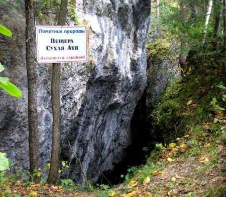 Пещера Сухая Атя (Сухоатинская пещера). Координаты: 54°50′57″N 57°24′48″E.