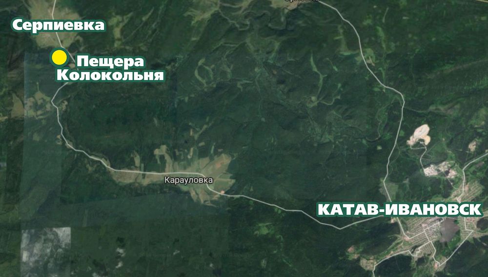 Пещера Колокольная. Координаты: 54°50'31"N 57°52'37"E.